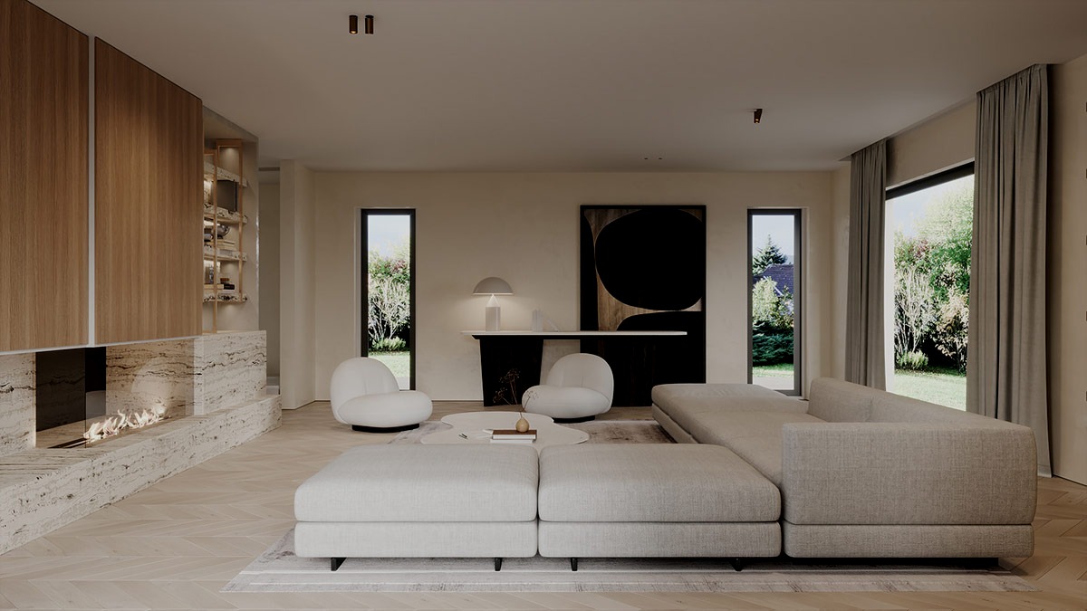 Σε αυτό το γοητευτικό σαλόνι από την House with Plans – οι ουδέτεροι τόνοι και οι απαλές αποχρώσεις φέρνουν μια αίσθηση ηρεμίας στον χώρο. Για να ολοκληρώσουν αυτήν την όμορφη διαρρύθμιση, το Lunarys Round Table και το βοηθητικό τραπέζι Lunarys, και τα δύο από τραβερτίνη, δίνουν την τελική πινελιά για μια φυσική ατμόσφαιρα.