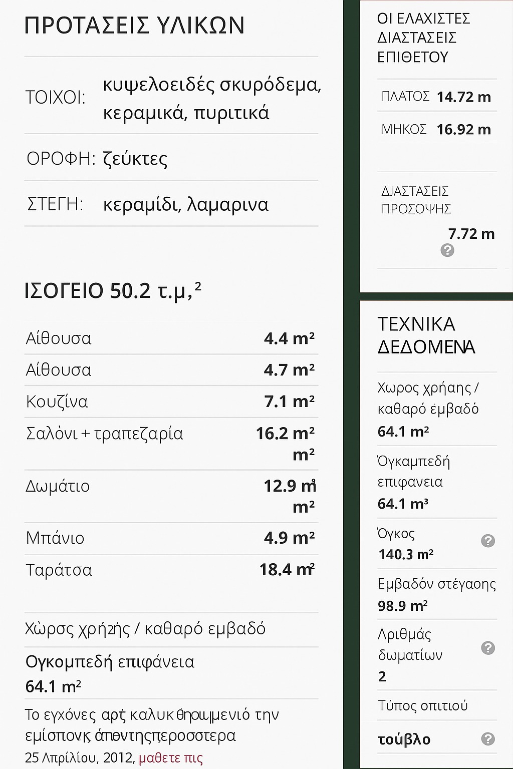 Παραδείγματα στοιχείων κάτοψης για ένα σπίτι 50τμ: